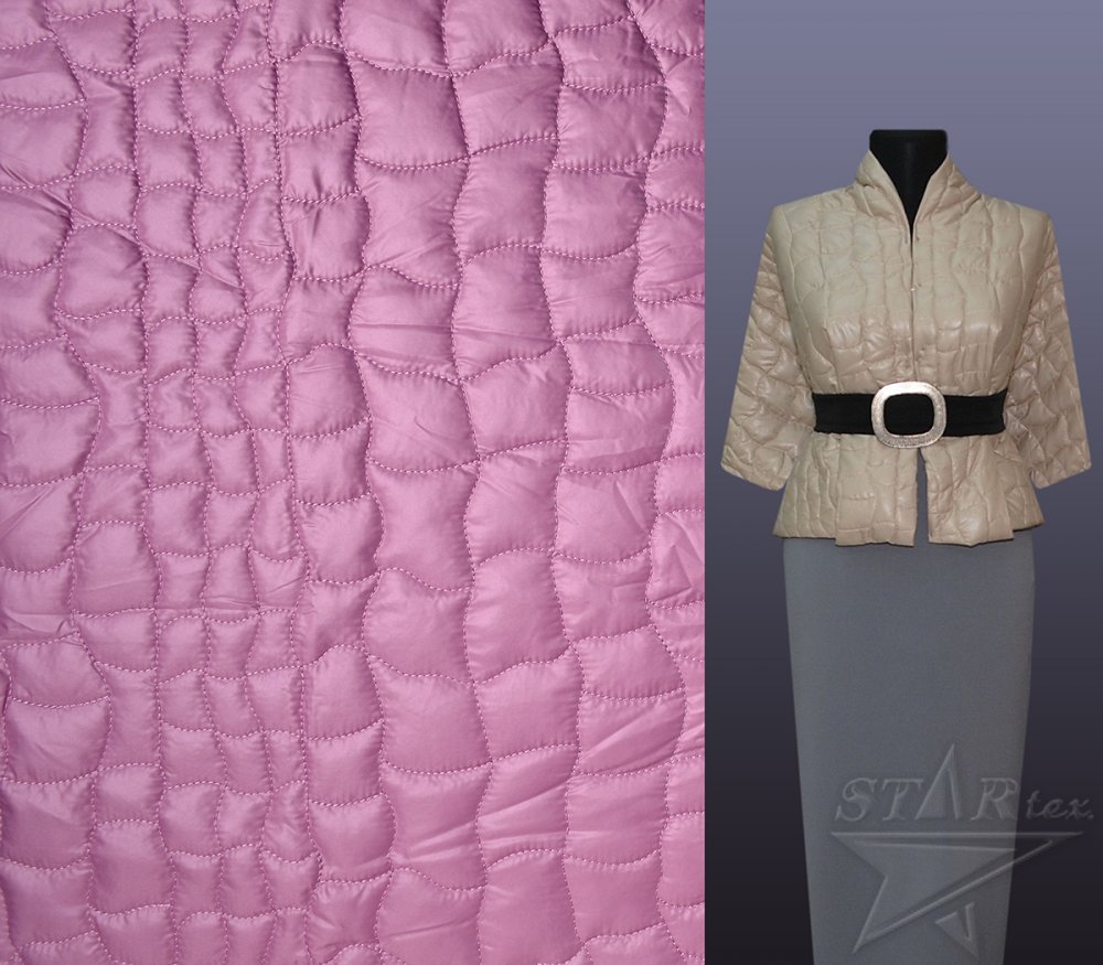 Плащевая ткань, дублированная синтепоном. Полотно объёмное, стёганое, вышитый рисунок абстрактный, геометрический. Подойдёт для пошива верхней одежды-курток, плащей.